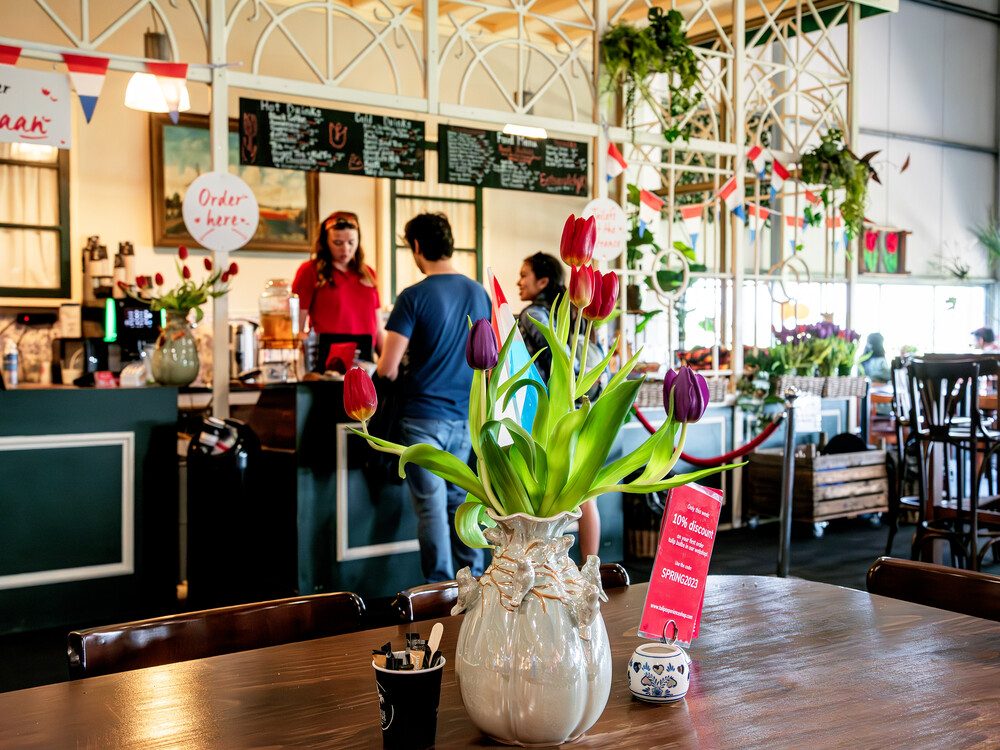Whether you crave a cup of coffee, a tasty lunch or simply want to sample typical Dutch treats. Our charming coffee corner 'De Witte Zwaan' has you covered, allowing you to enjoy your treat with a view of our enchanting show garden.